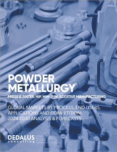 Products covered include parts and applications manufactured using powder metallurgy processes. Market trends and forecasts are provided for the years 2024-2030.