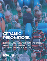 A detailed and comprehensive analysis of the world market for ceramic resonators used in frequency control and timing applications. This report presents both quantitative and qualitative market intelligence by product type, geographic market, end-user markets, application, and competitor. Applications markets are also analyzed in terms of frequency, packaging, and precision requirements.